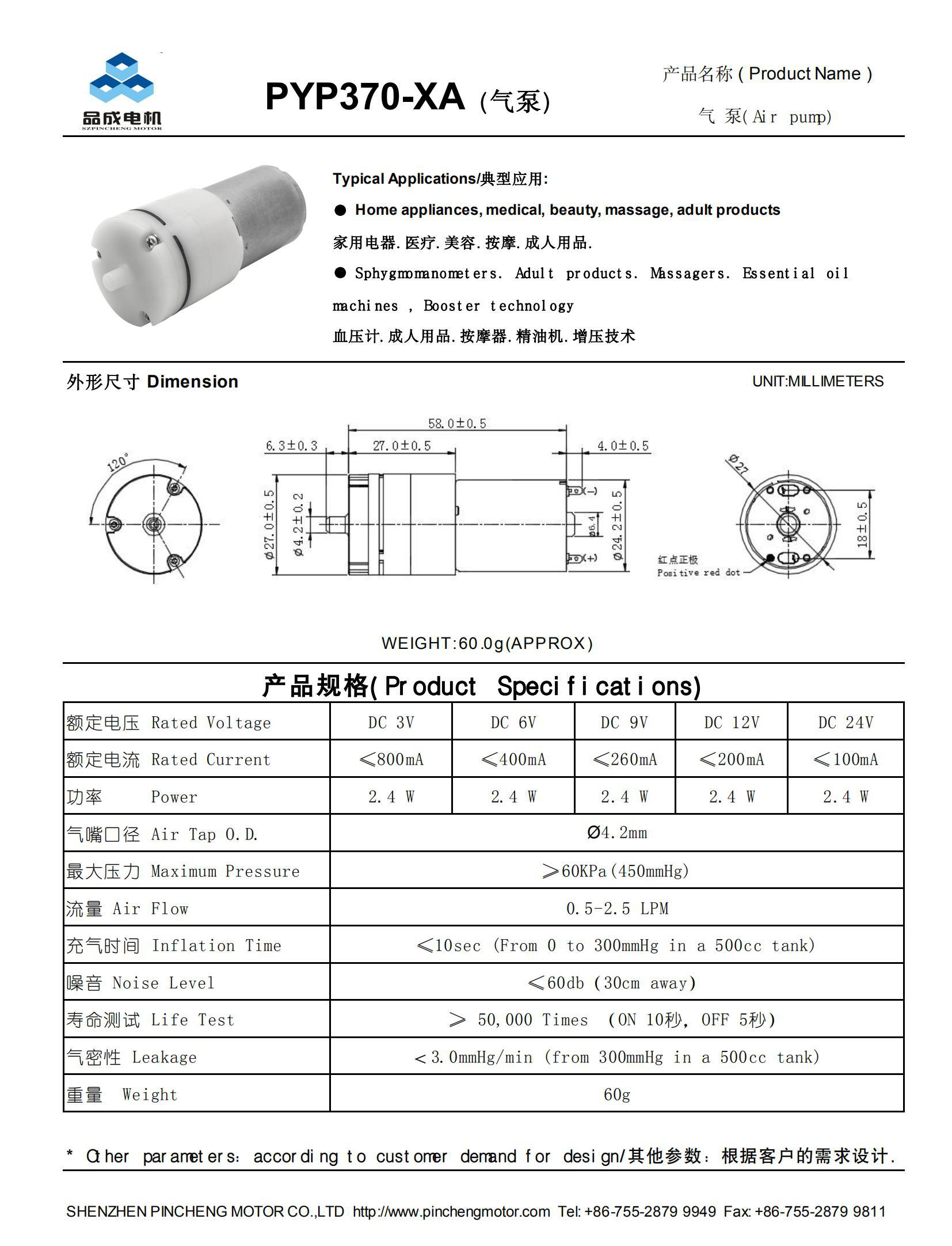 | 訂貨號 | 微型泵 | 品牌 | 品成電機 | 貨號 | PYP370A |