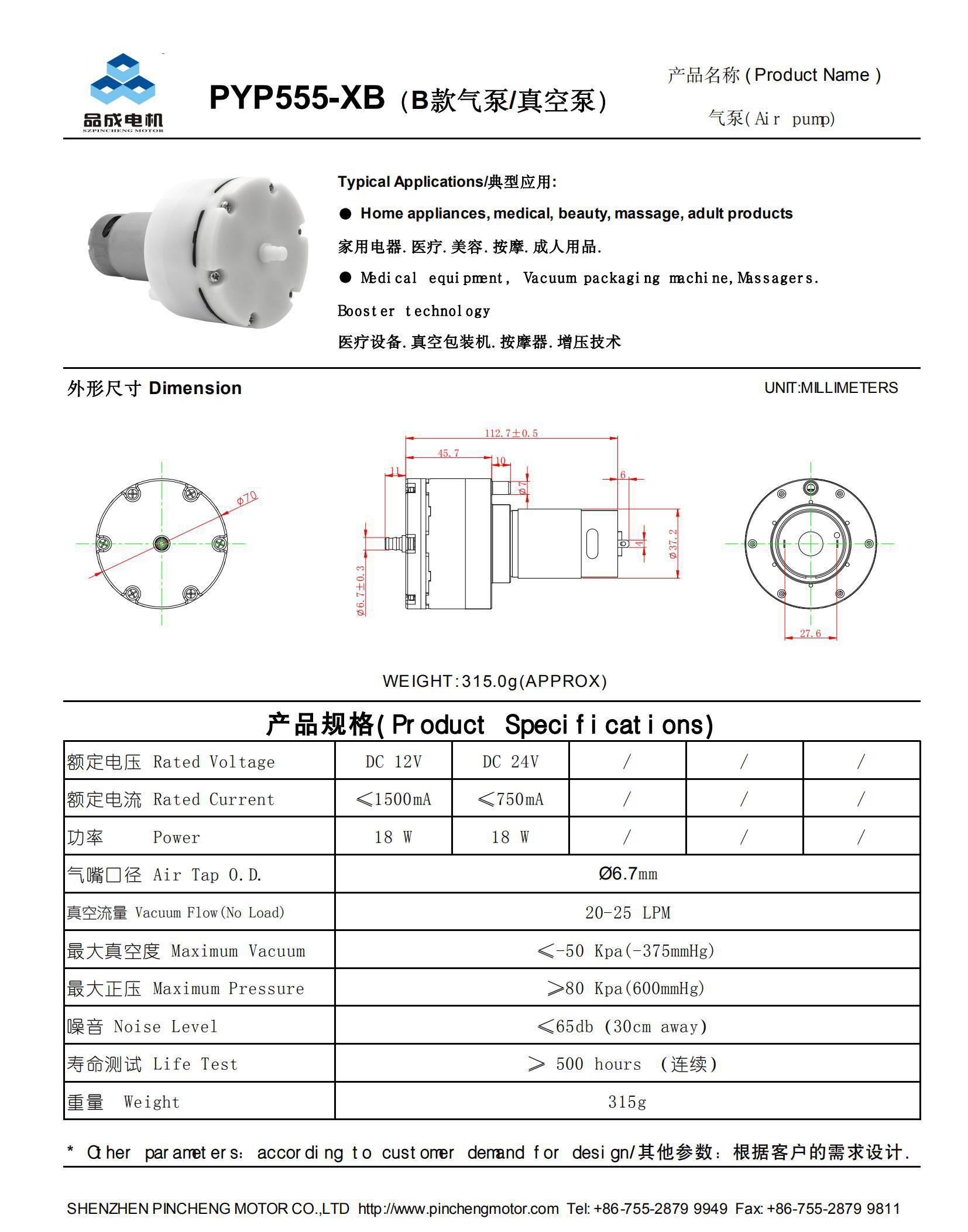 | 品牌 | 品成電機 | 型號 | PC555真空泵 | 材質 | 工程塑料 |