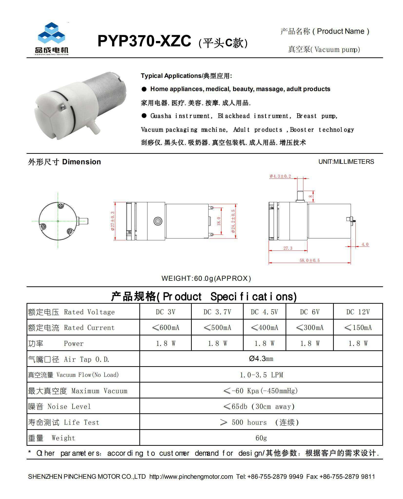 品牌 品成電機 型號 PYP370C款真空泵 材質 工程塑料